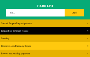 A to-do list is handy when storing important information and holding things on track. You can also create an interactive to-do list using JavaScript codes. It requires simple codes, but it definitely impacts your technical skills positively. Here is the example source code you can try to create a to-do list using JavaScript codes: